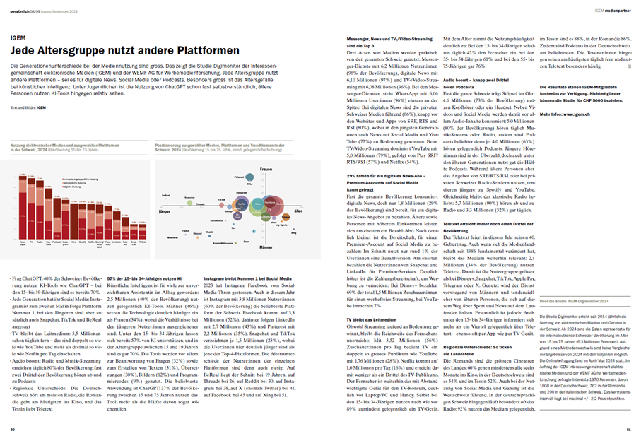 Grosses Medienecho zur Studie IGEM-Digimonitor 2024 in allen Sprachregionen.