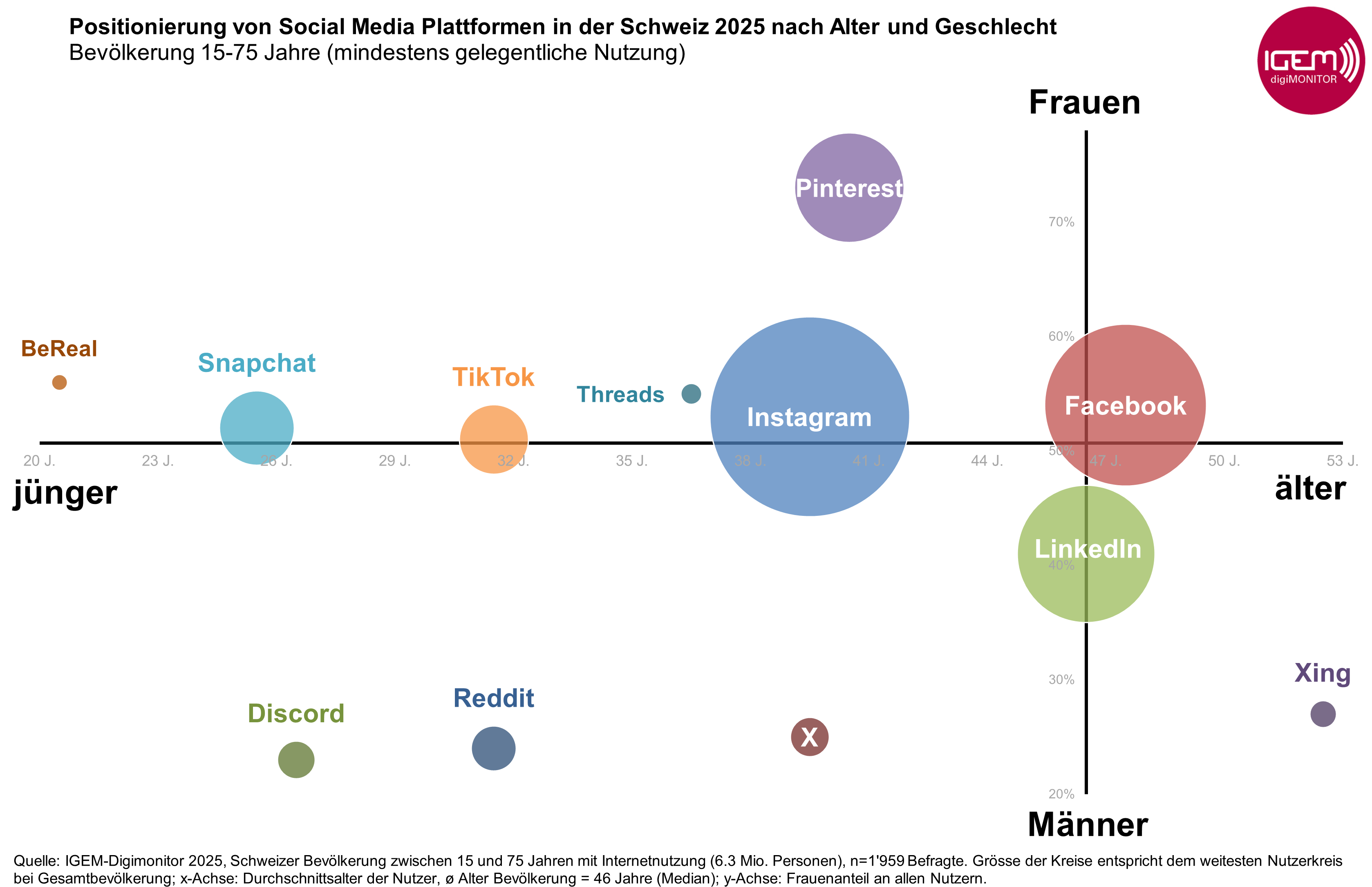 Quelle: Repräsentative Studie IGEM-Digimonitor 2025 zur Mediennutzung, Schweizer Bevölkerung von 15-75 Jahren mit Internetnutzung (6.3 Mio. Personen), n=1’959 Befragte.