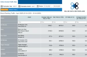 Ab 2025 gibt die Online Data Switzerland die Traffic-Daten der teilnehmenden Newssites heraus.