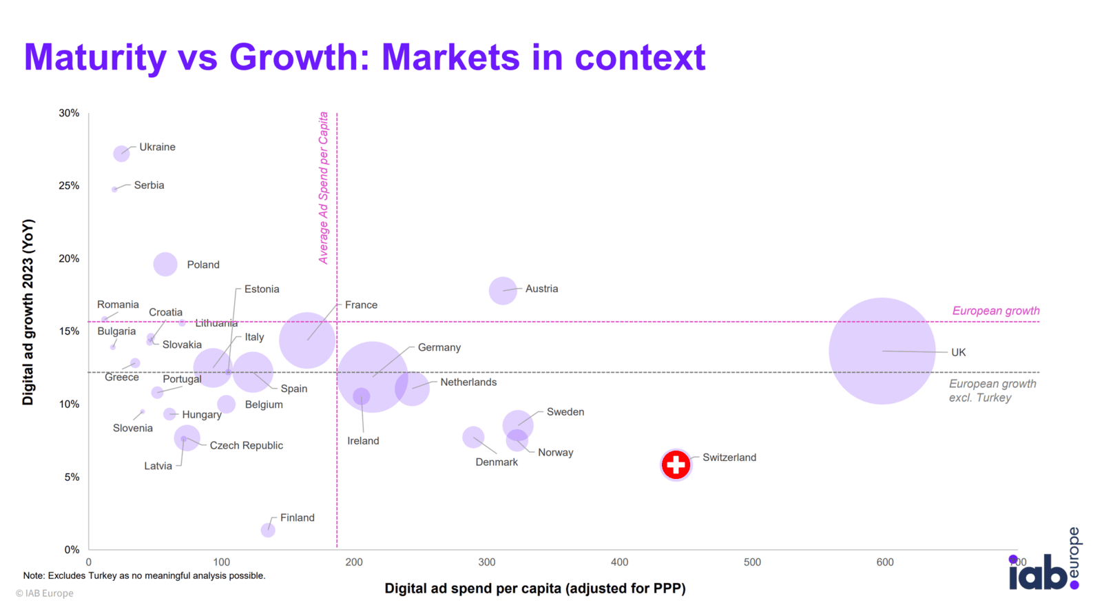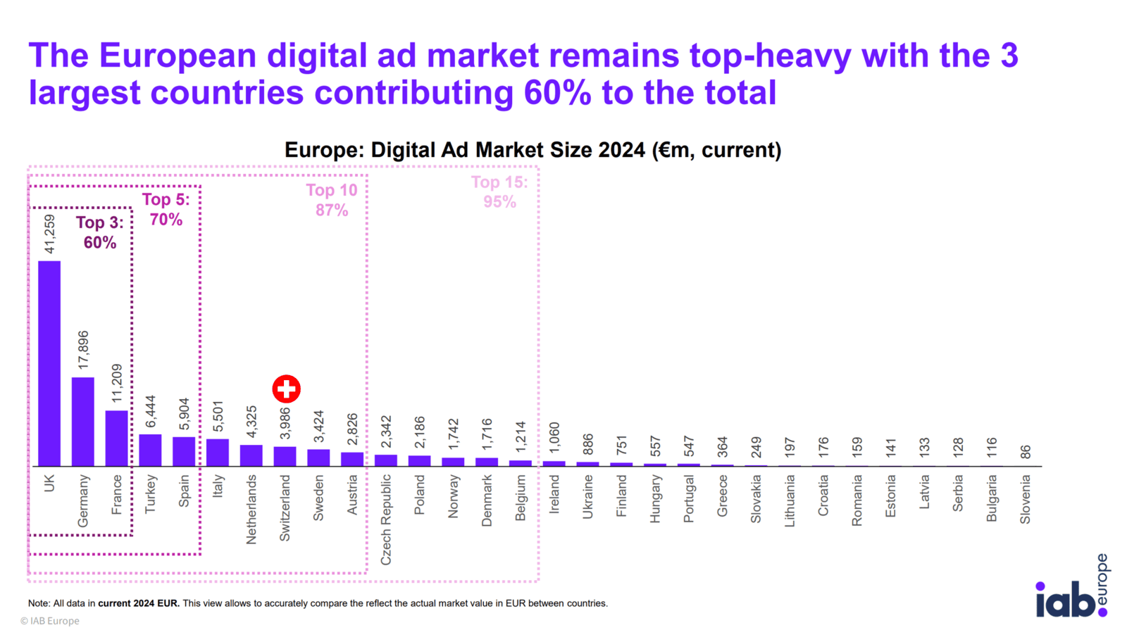 - Die Schweiz ist auf Platz 7 in den Top Ten der grössten Online-Werbemärkte in Europa (hinter UK, Deutschland, Frankreich, Türkei, Spanien, Italien und Niederlande).